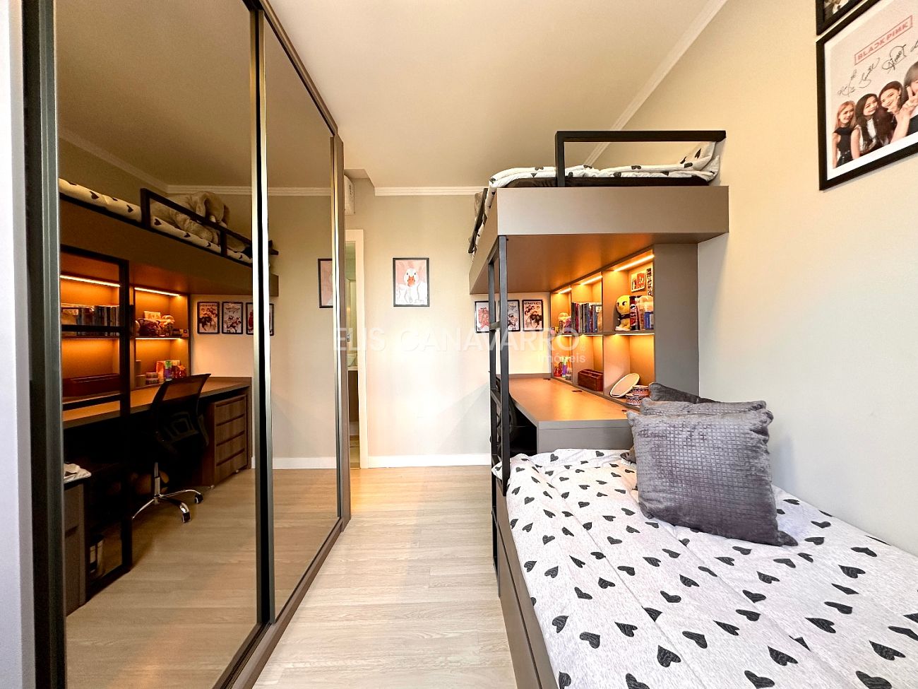 Com 137m² privativos, o apartamento possui uma planta muito bem distribuída com 4 dormitórios, sendo 2 suítes, além de um dos dormitórios adaptado como escritório, ideal para quem trabalha em home office ou deseja um espaço extra de organização.