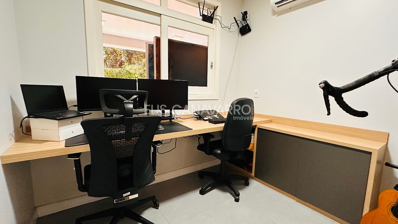 São 4 dormitórios, sendo uma suíte master com closet e varanda, além de todos os ambientes climatizados, incluindo escritório — ideal para quem precisa de um espaço de trabalho em casa.
